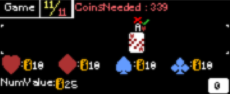 its about Guessing Cards Suit and number and using items to help u to not lose your wealth